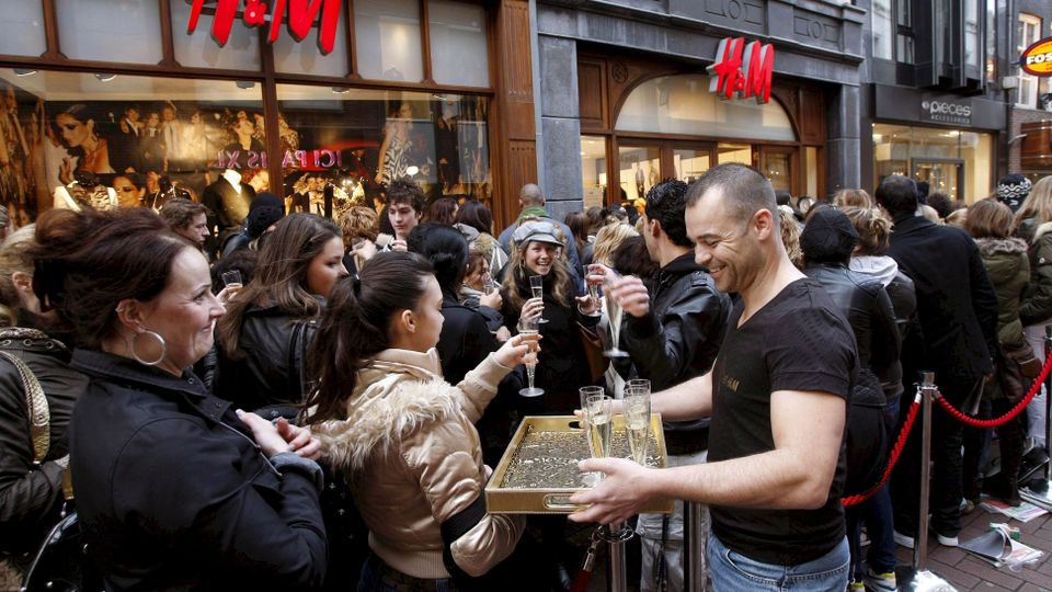 Menschen warten auf die Kollektion von Roberto Cavalli für H&M (in Amsterdam 2007)