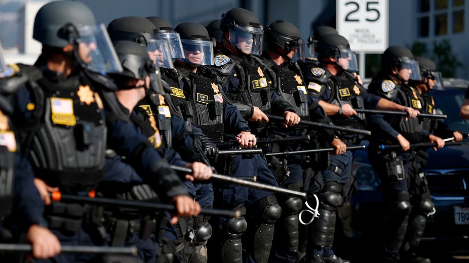 Kräfte der California Highway Patrol bei Anti-ICE-Protesten in Oakland,Kalifornien