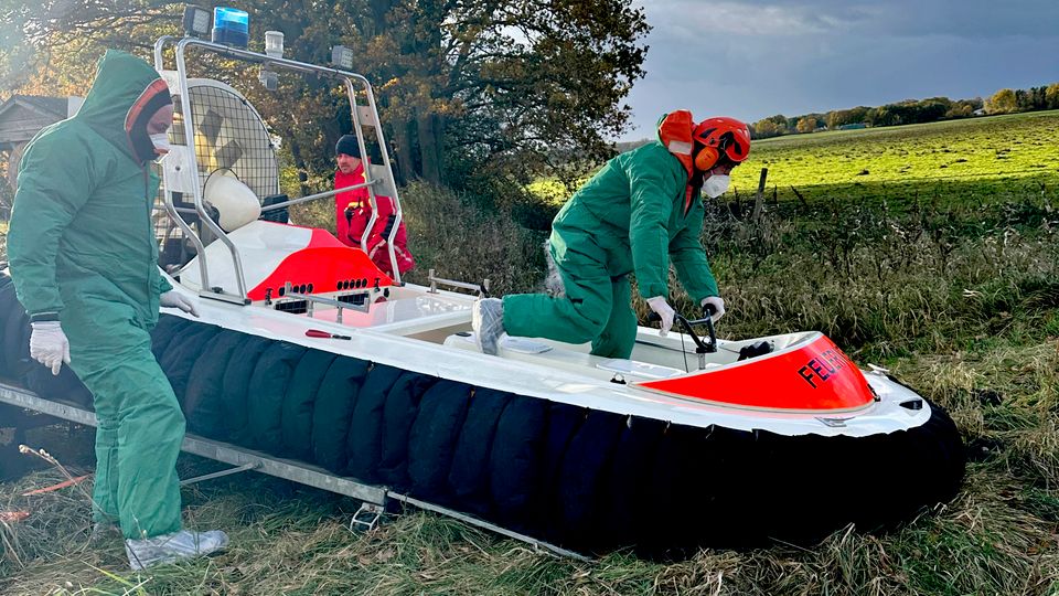Luftkissenboot der Warener Feuerwehr: Gefragt im Kampf gegen die Vogelgrippe