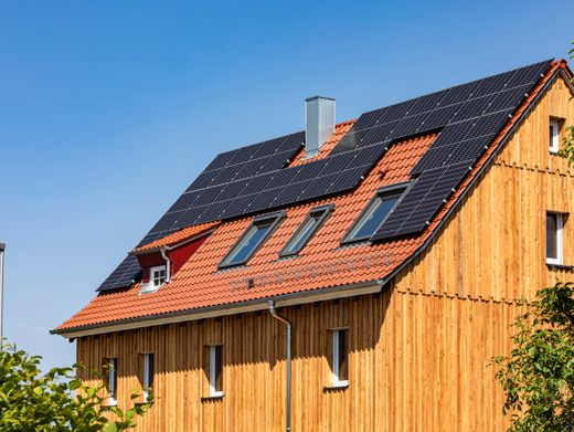 Haus mit PV-Anlage: Ein kompletter Wegfall der Förderung hätte zur Folge,dass der Musterhaushalt auf 439 Euro pro Jahr verzichten müsste