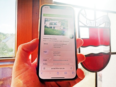 Unter der Internetadresse https://portal.little-bird.de/Uhingen oder auf www.uhingen.de/kindergarten werden die 13 Kindergärten auch nach unterschiedlichen Kriterien wie Betreuungsart,Öffnungszeiten und pädagogische Konzepte dargestellt. Die Suchergebnisse werden in einer Liste und auf einer Karte angezeigt,sodass die Lage der Einrichtungen leicht erkennbar ist.