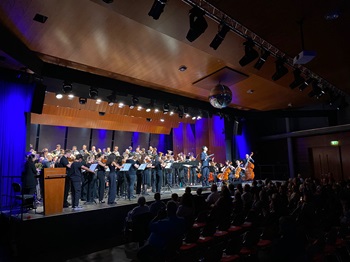 Das Landespolizeiorchester Baden-Württemberg und das Oberstufenorchester des Erich Kästner Gymnasiums spielten ein gemeinsames Benefizkonzert.