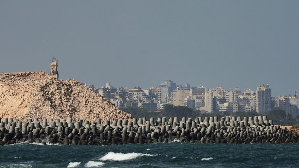 Wellen vor einer Barriere,die das ägyptische Alexandria vor dem steigenden Meeresspiegel schützen soll