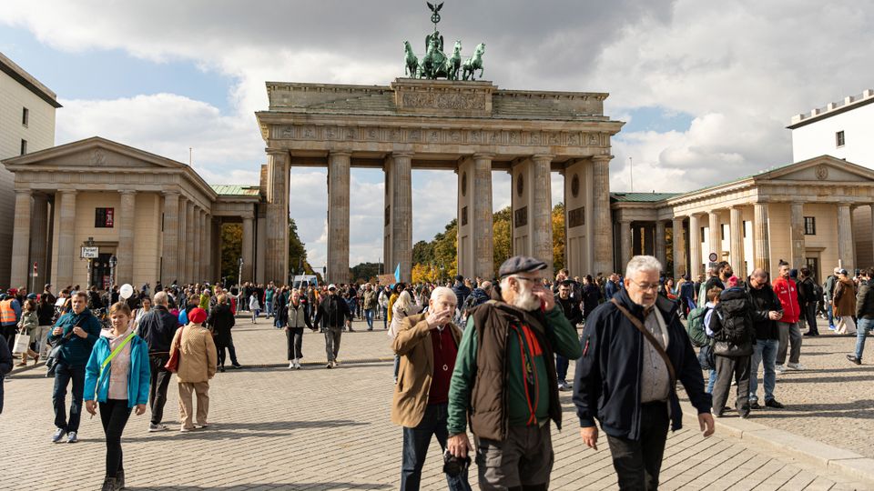 Senioren vor dem Brandenburger Tor in Berlin