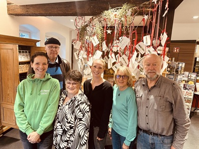 Ab dem 1. November 2025 hängen die HerzensWünsche im Klostershop an unserem „Wunschzweig“ bereit. Jede Bürgerin und jeder Bürger,die oder der einen Wunsch erfüllen möchte,„pflückt“ sich einen HerzensWunsch vom Zweig und besorgt das Geschenk. Immer wenn ein Wunsch gepflückt wird,läutet das Klosterteam die „HerzensWunsch-Glocke“.